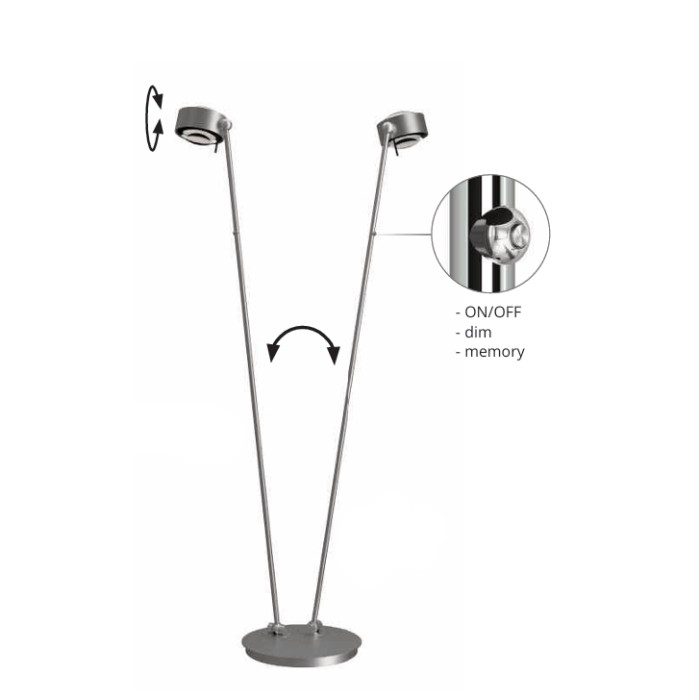 Die PUK! PRO 80 Floor Sister setzt elegante Lichtakzente bei gutem Licht. Ihre drehbareren Köpfe sowie kippbaren Stangen ermöglichen eine flexible Lichtsteuerung – perfekt für jede Leseecke sowie Wohnräume. Die integrierten Tastdimmer sorgen für eine individuelle Anpassung der Helligkeit. Das innovative „Plug & Click“-System sorgt für eine besonders einfache Installation. Bitte Beachten: Optiken wie Linsen/Gläser/Filter usw. sind nicht im Lieferumfang - bitte separat bestellen (siehe Top Light Zubehör).