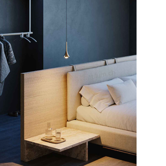 Der Pendel Rain von Lodes (Studio Italia), gefertigt in Italien. - wie ein Regentropfen hängt sie von der Decke herab und ragt elegant in den Raum hinein. Die Rain besteht aus hochwertig verarbeitetem Aluminium, an dessen Ende eine konvexe Glaslinse verbaut ist. Diese sorgt für eine blendfreie und nach unten gerichtete Lichtverteilung. - formschöne Pendelleuchte im modernen Stil - blendfreies, direktes Licht durch konvexe Linse - inklusive sparsames LED-Leuchtmittel - individuelle Gestaltung durch freie Baldachin-Wahl welche separat zu bestellen und NICHT inklusive sind. Die aktuellen Modelle sind im Shop immer unter der Rubrik LODES - Zubehör zu finden.