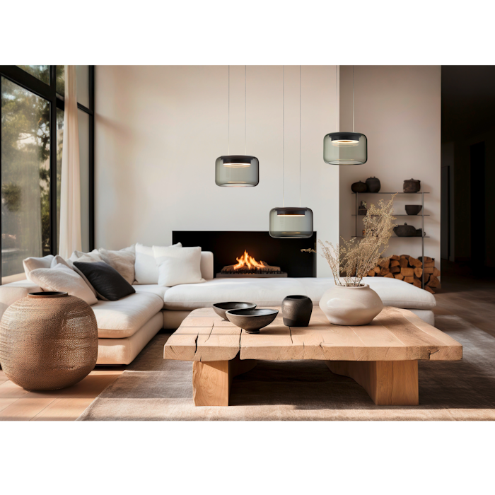 Die Sidra Pendelleuchten Serie von Knapstein mit modernster Technik. Mundgeblasenes in smoked glass mit stilvoll subtiler Färbung und polierten Kanten. Acrylabdeckung weiß, oben bündig und unten mit seitlicher Sichtkante. Memory-Funktion, stufenlose Lift-Höhenverstellung in einem Bereich von 700 - 1700mm - dir-/indirekte Beleuchtung mit Follower Gestensteuerung zum Ein-/Ausschalten und stufenlosen Dimmen pro Leuchtenkörper inkl. Einstellung der Lichtfarbe zwischen 2.200 - 3.000K - Synchronisierung mehrerer Pendel mit der jeweiligen Lichteinstellung der Hauptleuchte