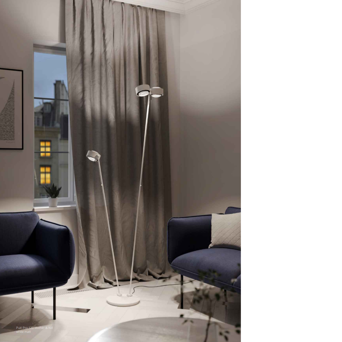 Die PUK! PRO 120 MOTHER & KID setzt mit größeren Leuchtenköpfen markante Lichtakzente. Ihr einzigartiges Design mit zwei unterschiedlich großen, schwenkbaren Armen sorgt für eine vielseitige Lichtgestaltung – perfekt für große Räume oder als stilvolles Statement. Die drehbaren Köpfe ermöglichen eine gezielte Lichtausrichtung, während der integrierte Tastdimmer für eine komfortable Helligkeitssteuerung sorgt. Das innovative „Plug & Click“-System sorgt für eine besonders einfache Installation. Bitte Beachten: Optiken wie Linsen/Gläser/Filter usw. sind nicht im Lieferumfang - bitte separat bestellen (siehe Top Light Zubehör).