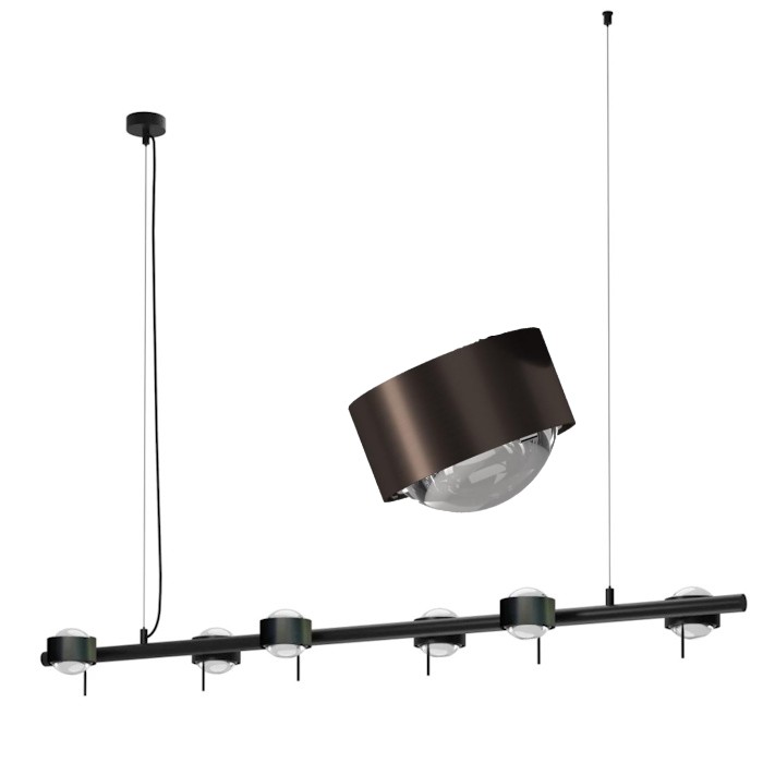 Die PUK! PRO 120 SIXTETT ist eine elegante LED-Pendelleuchte mit 6 drehbaren Leuchtenköpfen, die gezielte Lichtakzente setzen. Durch ihr stilvolles Design eignet sie sich ideal für Esstische, Besprechungsräume oder lange Theken. Die Lichtköpfe können flexibel ausgerichtet werden, um eine perfekte Beleuchtungssituation zu schaffen. Optional sind verschiedene Kabelfarben erhältlich, um die Leuchte individuell an das Interieur anzupassen. - Bitte Beachten: Die Linsen/Gläser/Filter usw. nicht im Lieferumfang - bitte separat bestellen (siehe Top Light Zubehör).