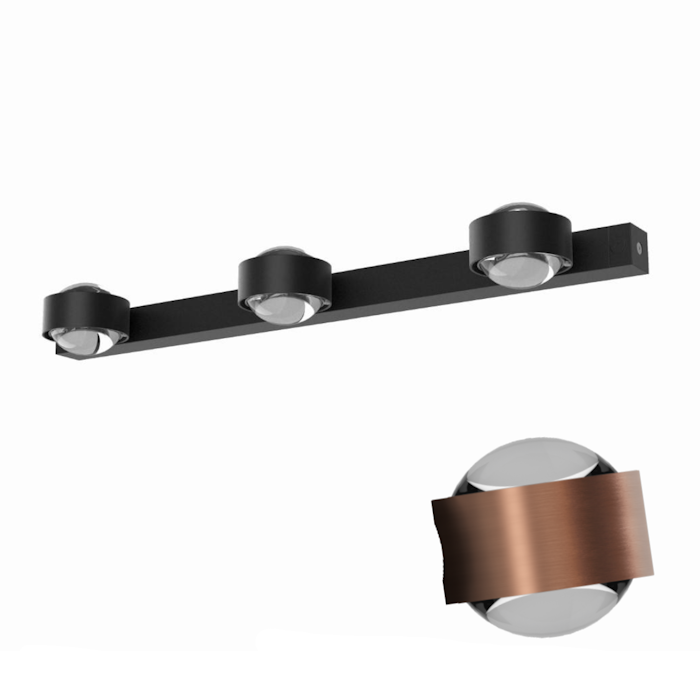 Die PUK! PRO Choice ist eine Designerleuchte, die mit dem Plus X Award für ihre hohe Qualität und herausragendes Design ausgezeichnet wurde. Als modern interpretierter Lichtbalken bietet die Leuchte eine flexible Anpassung an Ihre Beleuchtungsbedürfnisse, ob als dekorative Wand- oder Spiegelleuchte. Die drehbaren Leuchtenköpfe ermöglichen eine gezielte Lichtsteuerung. Die leistungsstarke Hochvolt-LED-Technologie liefert ein intensives, warmweißes Licht. Das innovative „Plug & Click“-System sorgt für eine besonders einfache Installation. Bitte Beachten: Optiken wie Linsen/Gläser/Filter usw. sind nicht im Lieferumfang - bitte separat bestellen (siehe Top Light Zubehör).