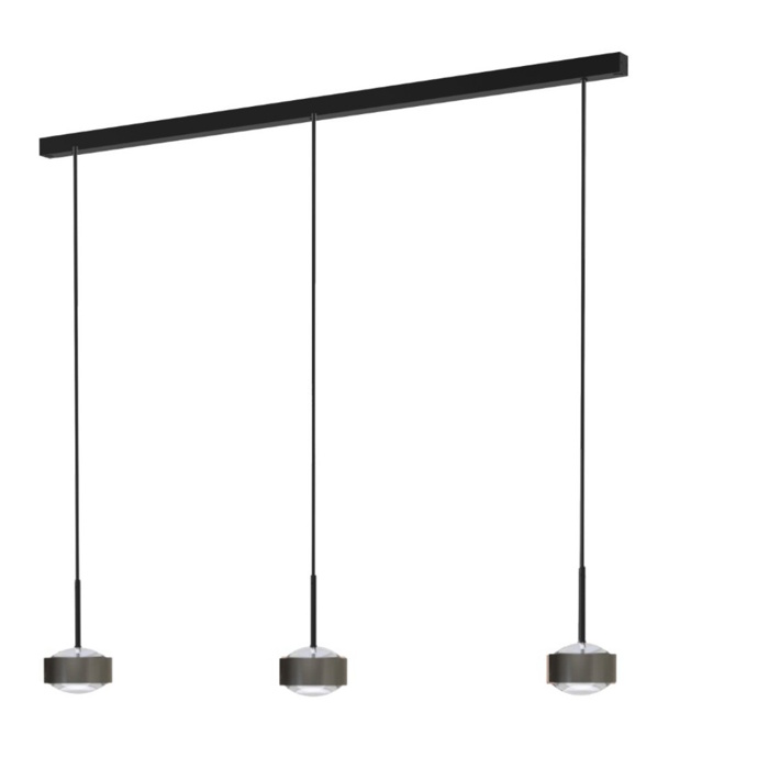 Die PUK! PRO 120 Choice Drop kombiniert elegantes Design mit vielseitiger Lichtwirkung. Diese Balkenleuchte ist mit 2 oder 3 Pendelleuchten ausgestattet, die sowohl nach oben als auch nach unten strahlen und so für eine ausgewogene Raumausleuchtung sorgen. Ideal für Esstische, Theken oder Konferenztische setzt sie stilvolle Akzente und schafft eine angenehme Lichtatmosphäre. Optional sind verschiedene Kabelfarben erhältlich, um die Leuchte individuell an das Interieur anzupassen. - Bitte Beachten: Die Linsen/Gläser/Filter usw. nicht im Lieferumfang - bitte separat bestellen (siehe Top Light Zubehör).