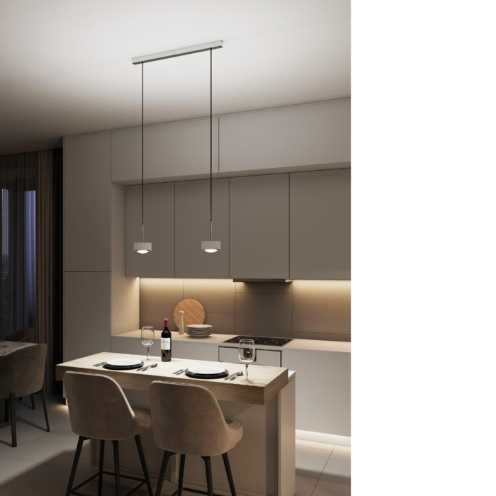 Die PUK! PRO 80 Choice Long ONE kombiniert elegantes Design mit kraftvoller Beleuchtung. Mit ihren Leuchtenköpfen sorgt sie für eine ausdrucksstarke Lichtwirkung, ideal für große Esstische oder stilvolle Arbeitsbereiche. Die direkte Downlight-Beleuchtung schafft eine angenehme Atmosphäre, während das klare, moderne Design der Leuchte für eine stilvolle Integration in jedes Interieur sorgt. Optional sind verschiedene Kabelfarben erhältlich, um die Leuchte individuell an das Interieur anzupassen. - Bitte Beachten: Die Linsen/Gläser/Filter usw. nicht im Lieferumfang - bitte separat bestellen (siehe Top Light Zubehör).